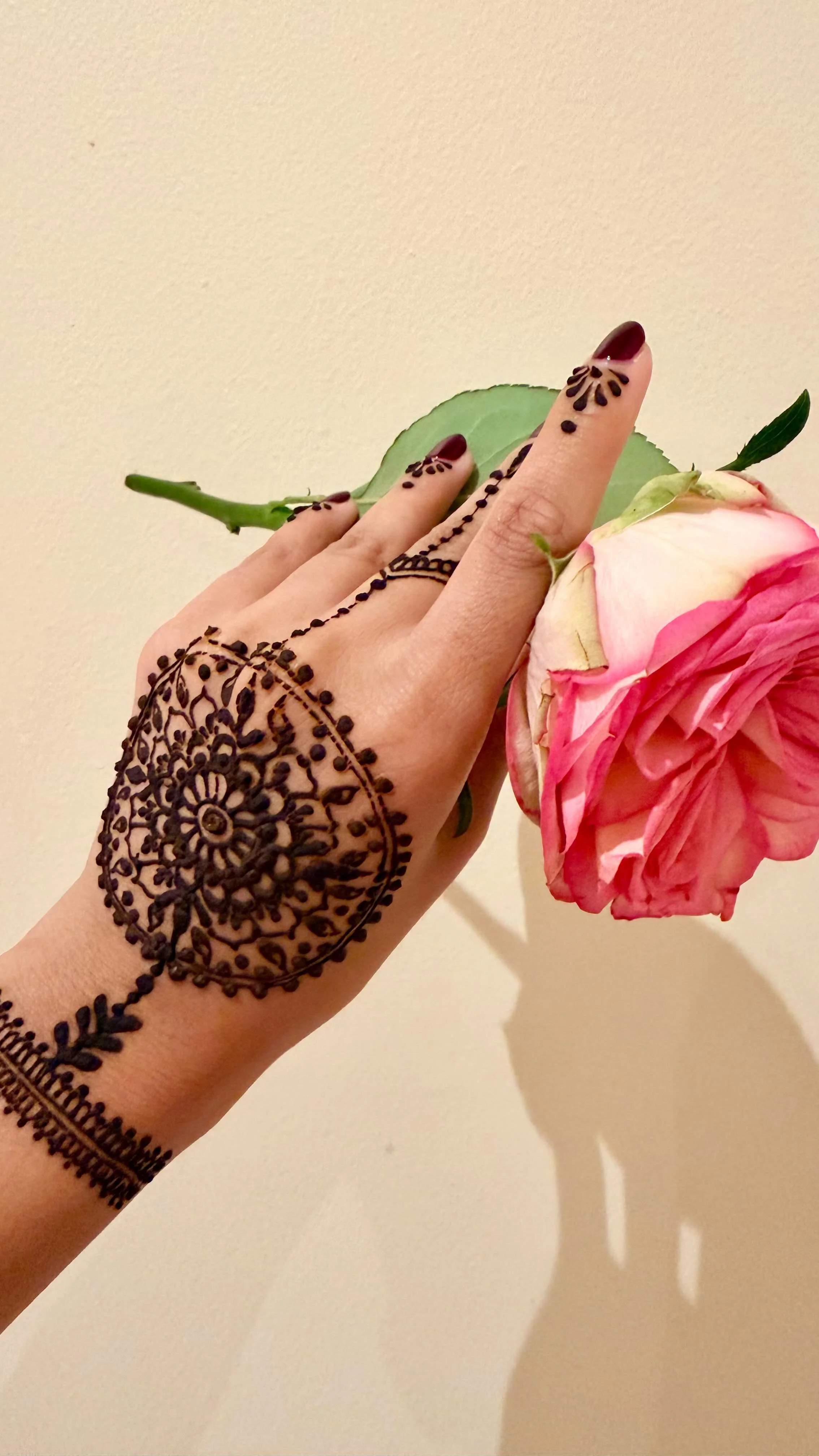 Henna services offered across personal adornment, editorial projects, and select bridal work.